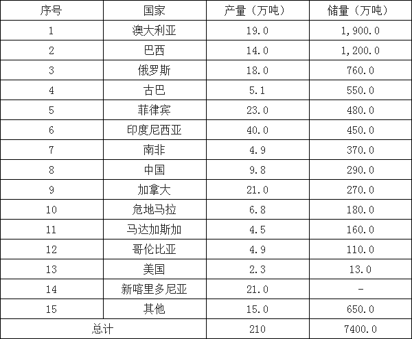 世界鉻鐵礦儲量和儲量基礎(chǔ)(商品級礦石)
