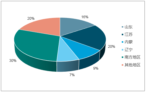 鎳鐵作為鎳礦的替代品,具有提高鋼的抗彎強度和硬度,并降低不銹鋼冶煉成本的優(yōu)點。在我國,鎳鐵行業(yè)起步較晚,但發(fā)展迅速,2012年我國鎳鐵產(chǎn)能達到800萬噸,并在往后幾年快速擴張,在2017年鎳鐵產(chǎn)能達4538.17萬噸,在這6年間年均增長率達42.14%。產(chǎn)能的分布主要在江蘇、山東及南方地區(qū),分別占比20%、16%和30%。