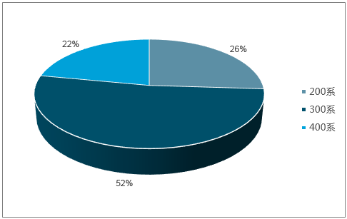 熱軋是不銹鋼材增長的主要推手,占比高達73.40%,17年同比增長3.12%;冷軋占比26.60%,17年同比減少2.95%。在牌號分組方面,300系鋼材占比最高,51.84%,200系占比25.62%,400系占比22.53%,去年各牌號產(chǎn)量不銹鋼均實現(xiàn)較大增長,今年各牌號產(chǎn)量基本與去年持平。